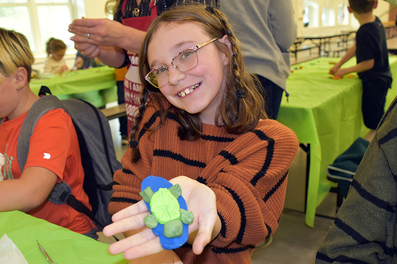 Students and adults made clay ornaments that will be attached to the fence this spring. This fence was needed to help keep pesky deer out that were eating the new growth on the raspberry bushes, stunting their production of flowers that lead to raspberries.