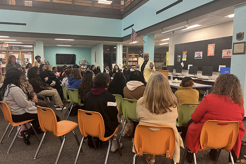 Ithaca College president Dr. La Jerne Terry Cornish visited UEHS to talk to GOCET (Girls of Color Empowerment Team, AKA Girl Squad) about her life story from becoming a teacher, then a principal, to a professor, and now the President of Ithaca College. Joining her was executive assistant MaryAnn Taylor who is a UEHS Class of 1977 graduate.