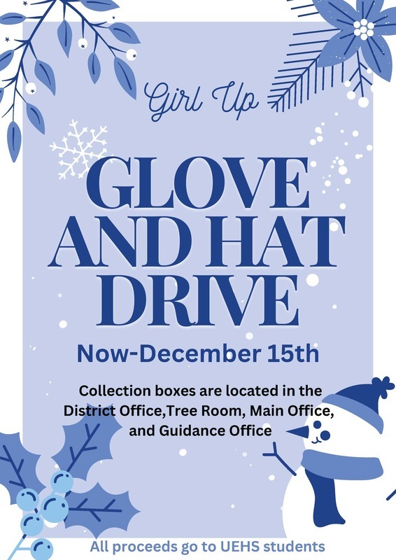 Girl Up is coordinating a winter hat and glove drive. These winter necessities will be given to UEHS students. We hope you will consider donating to assist our UEHS Tigers.